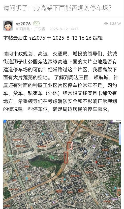 2. 帖文《寶安大道轉(zhuǎn)深南大道交匯處與前海路十字交叉天橋底下能否建設(shè)公共停車場和公共充電樁?》
