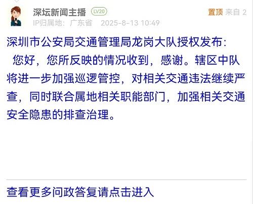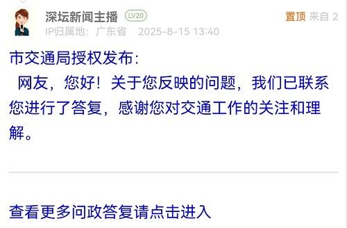 各職能單位如需對網(wǎng)友反映的問題進(jìn)行回應(yīng),可在深圳論壇注冊官方賬號并通過認(rèn)證,回帖進(jìn)行回應(yīng)。