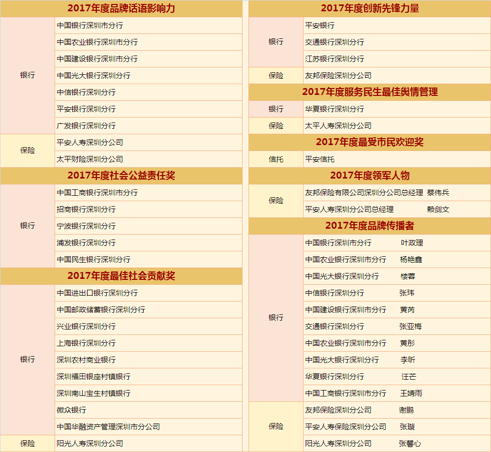 2017年,深圳金融實現(xiàn)快速發(fā)展。為了讓金融真正回歸服務(wù)實體經(jīng)濟的本源,真正脫虛向?qū)?,深圳新聞網(wǎng)將聯(lián)手行業(yè)權(quán)威協(xié)會、第三方機構(gòu)、媒體,以“新時代·新服務(wù)·新金融”為主題,以深圳金融機構(gòu)如何回歸本原、改革創(chuàng)新、服務(wù)實體經(jīng)濟為核心,從“品牌話語影響力”、“創(chuàng)新先鋒力量”、“輿情管理 服務(wù)民生”三個角度出發(fā),邀請眾多金融機構(gòu)共同發(fā)力,自覺加入金融回歸服務(wù)實體經(jīng)濟本源這一滾滾時代洪流中來。作為一個金融公民,我們也盡一份該盡的社會責(zé)任,為市民遴選最能代表深圳本地實力及形象的金融機構(gòu),同時頒發(fā)重磅大獎:“金桐獎——年度品牌話語影響力”、“金桐獎——年度創(chuàng)新先鋒力量”、“金桐獎——服務(wù)民生最佳輿情管理”。