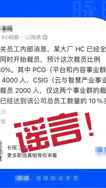 騰訊裁員比例高達10%到30%?辟謠了!